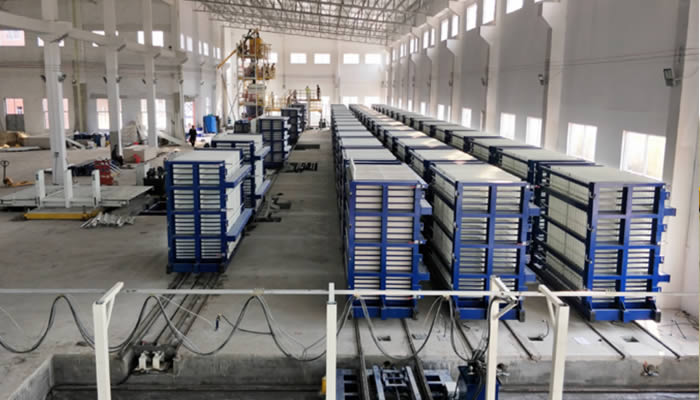 TY12型墻板生產(chǎn)線包括:墻板成型機、整體穿抽管系統(tǒng)、發(fā)泡系統(tǒng)、水箱、電子計量儲料倉、螺旋上料輸送機、儲料罐、螺旋輸送機、EPS熟化料倉、硫化干燥床、EPS預發(fā)機、數(shù)控配電室、發(fā)泡攪拌機、整體出板系統(tǒng)、叉車、成品堆放區(qū)、擺渡車。