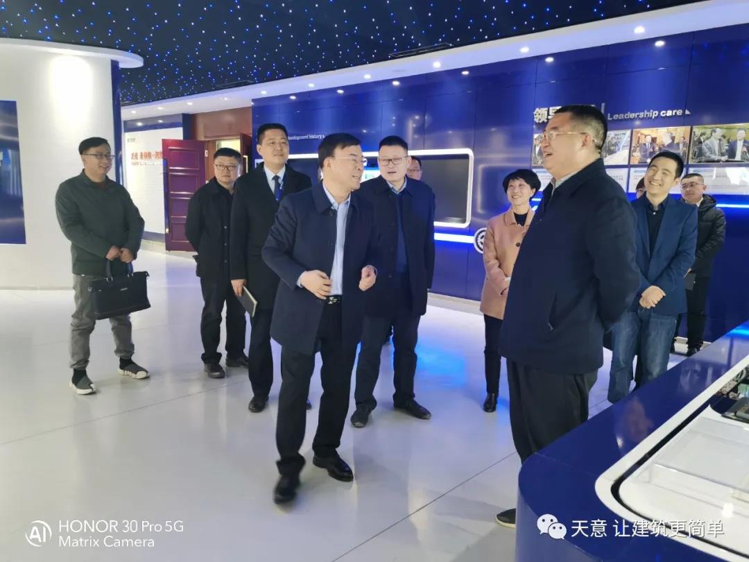 2021年2月23日, 市住建局黨組成員、副局長趙羽,市住建局節(jié)能與科技科科長孫新魯?shù)阮I(lǐng)導(dǎo)一行,在區(qū)住建局局長鄒紅, 區(qū)住建局行業(yè)發(fā)展科科長馬特等領(lǐng)導(dǎo)的陪同下,蒞臨天意座談并考察指導(dǎo)工作。天意機械董事長劉洪彬,總經(jīng)理劉海龍,國內(nèi)銷售部經(jīng)理秦艷慧等領(lǐng)導(dǎo)參加了座談?wù){(diào)研,并陪同參觀了天意省級研發(fā)中心、科技體驗館、BIM技術(shù)在裝配式建筑中的創(chuàng)新應(yīng)用情況等。