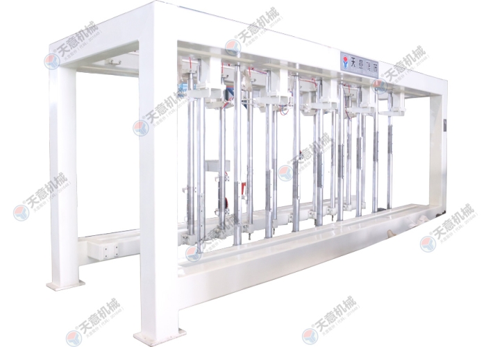 翻轉去底行車將坯體去底(連側板)吊至蒸養(yǎng)小車上,切割小車范圍原始位置進行下一個切割循環(huán)。