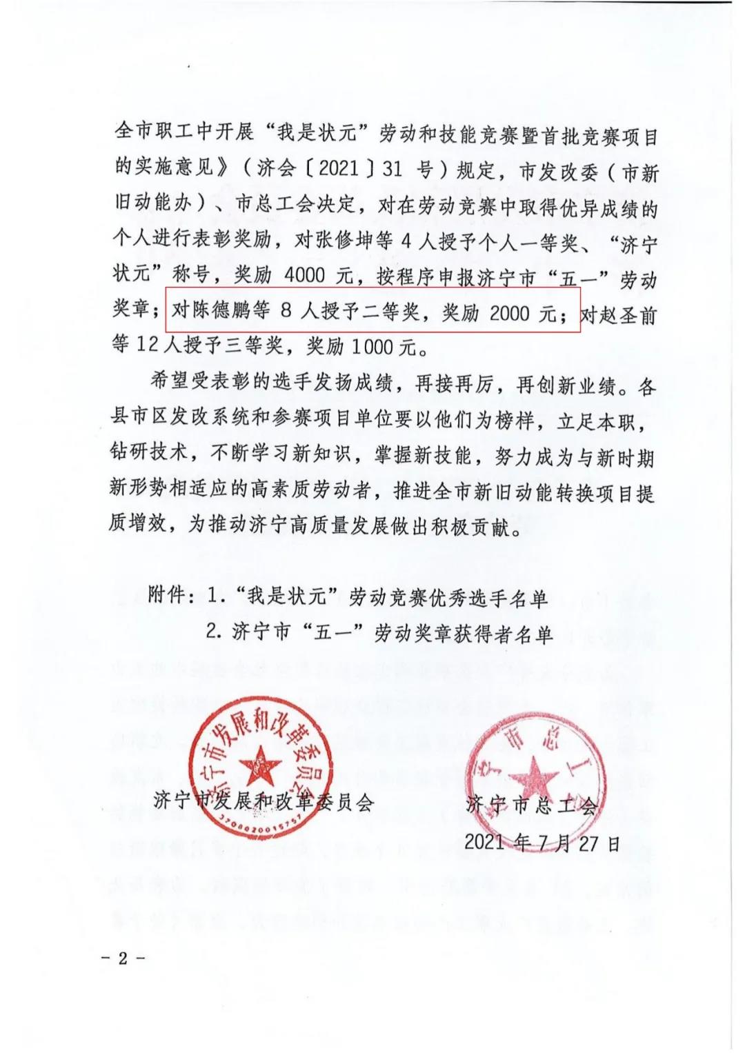 熱烈祝賀我司陳德鵬獲得濟(jì)寧市“我是狀元”勞動(dòng)競(jìng)賽—新舊動(dòng)能轉(zhuǎn)換重大課題攻關(guān)競(jìng)賽單元二等獎(jiǎng)