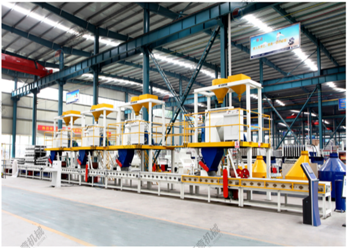 該生產(chǎn)線可生產(chǎn)各種產(chǎn)品,如FSB建筑保溫免拆模板、EPC建筑保溫免拆模板、夾心保溫墻板等,生產(chǎn)線自動化程度高,采用PLC控制系統(tǒng)保證了生產(chǎn)線的穩(wěn)定性,節(jié)省人工,生產(chǎn)效率高,設備配有計量系統(tǒng),結(jié)合產(chǎn)品的材料性能使料漿攪拌均勻,能夠很好的將產(chǎn)品復合在一起,從而提高了產(chǎn)品的質(zhì)量。
